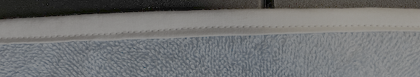 Be sure when you get to the hood part that the ends of hood flap bias are covered by this outermost bias. This seems like a daunting and long step but it actually goes by fairly quickly once you get the stitch going and find a rhythm. For the straightaways just keep the bias and towel lined up, keep tension and let the feed dogs of the machine do the work.