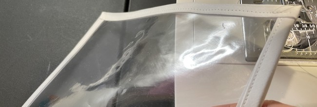 4. Next place the layers together and repeat the bias process for the sides and bottom and secure the two vinyl layers into one.