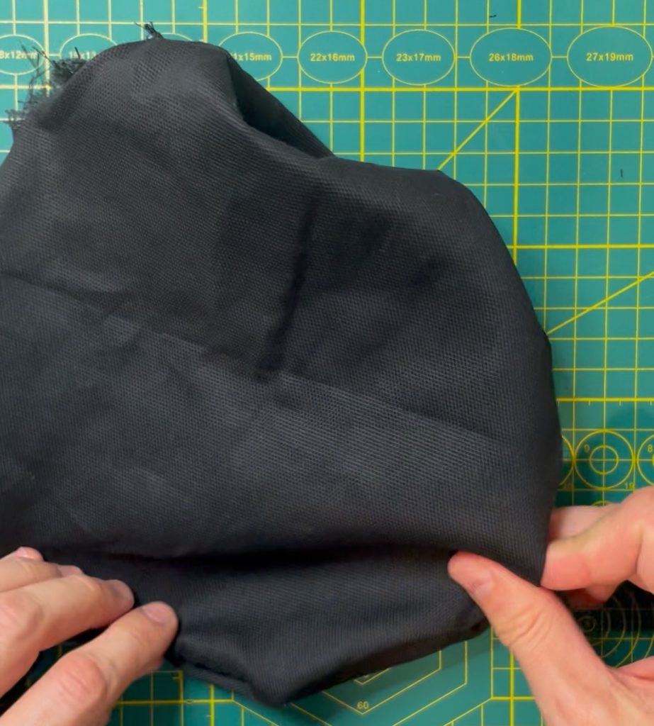 Leave about a 2” gap at the end to turn the fabric right side out.